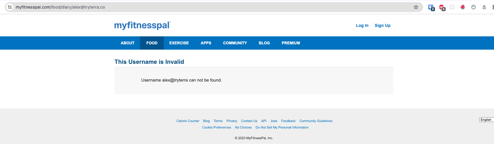 Indicates the user failed to enable diary sharing/disabled it since they authenticated through Terra. In order to remediate this, have the user re-enable diary sharing with the same password used during initial authentication, or have them re-authenticate after having enabled diary sharing as per the "how-to" guide in the login screen